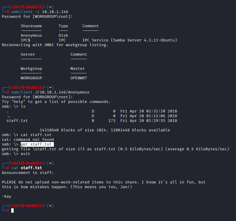 smbclient //10.10.1.146/Anonymous