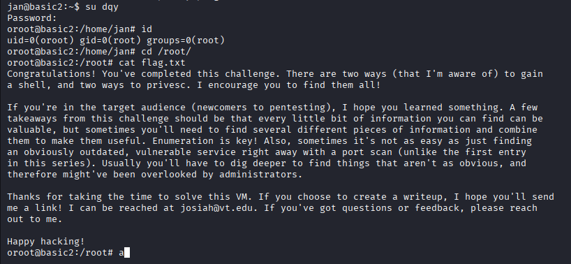 root有了找flag呗,进入root用户的~目录看看,找到了